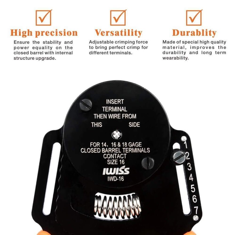 IWISS Socket Contact 4 Indent Crimping Pliers for Automotive DEUTSCH DT Connector Closed Barrel Terminal Crimping Tool AWG 14 16 18 IWD-16