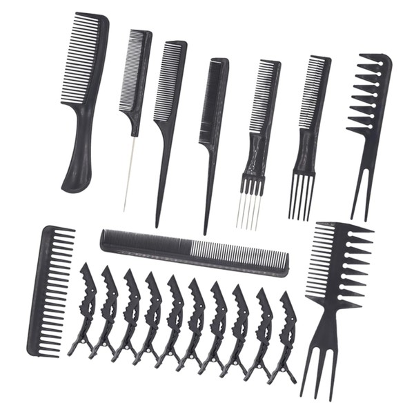 IWOWHERO 1 Set Male Styling Comb Set Multi Functional Hairdressing and Dyeing Tool Kit with Double Teeth Wide Tail Combs Alligator Haircutting Clips for Salon Home Use Black