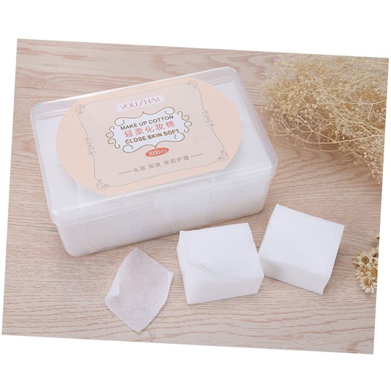 IWOWHERO 1000pcs Makeup Cotton Pads Thin Non Woven Cosmetic Facial Pads with Storage Box for Gentle Makeup Removal Skin Friendly for Daily Skin Care and Toner Application