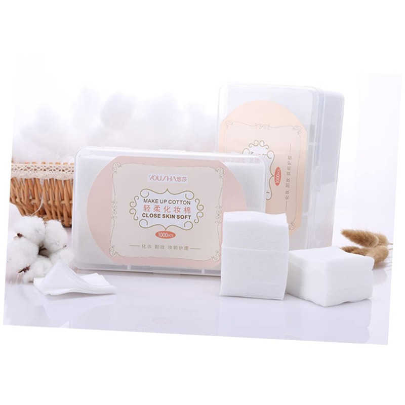 IWOWHERO 1000pcs Makeup Cotton Pads Thin Non Woven Cosmetic Facial Pads with Storage Box for Gentle Makeup Removal Skin Friendly for Daily Skin Care and Toner Application