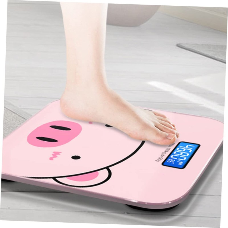 IWOWHERO 1PC USB Charging Cartoon Body Weight Scale Durable Tempered Electronic Weight Measuring Scale for Home Use Lovely Design for Adults Convenient Charging Function