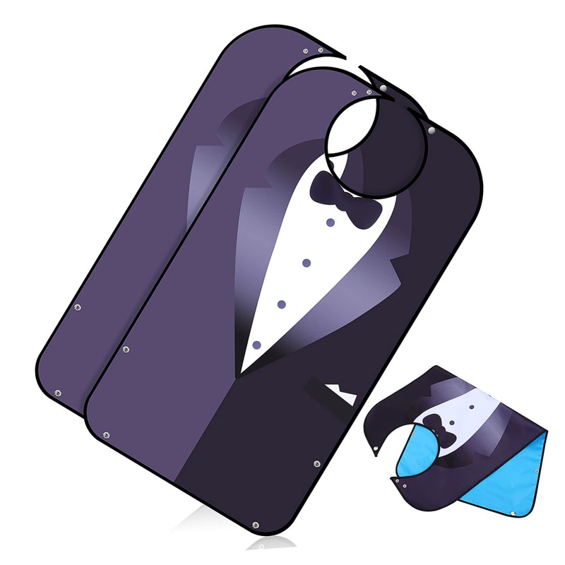 IWOWHERO 2 Pcs Adult Bibs with Snap Buttons Washable Clothing Protectors for Elderly Men and Women Suit Pattern Printed Mealtime Food