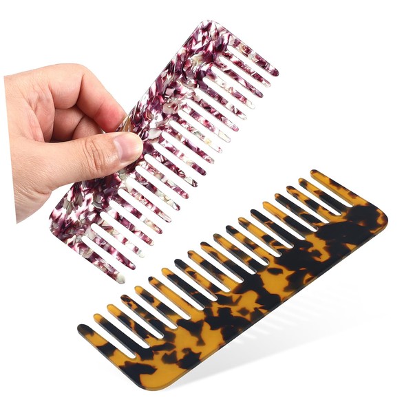 IWOWHERO 2 Pcs Wide Tooth Comb Durable Acetate Detangling Comb for Wet Dry Hair Versatile Use for Men Women Compact Design for Easy Carrying