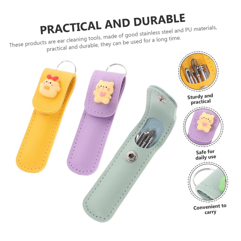 IWOWHERO 3 Sets Cute Cartoon Ear Cleaning Tools Portable Ear Wax Removal Spoons Safe and Comfortable for Family Use Includes Chick and