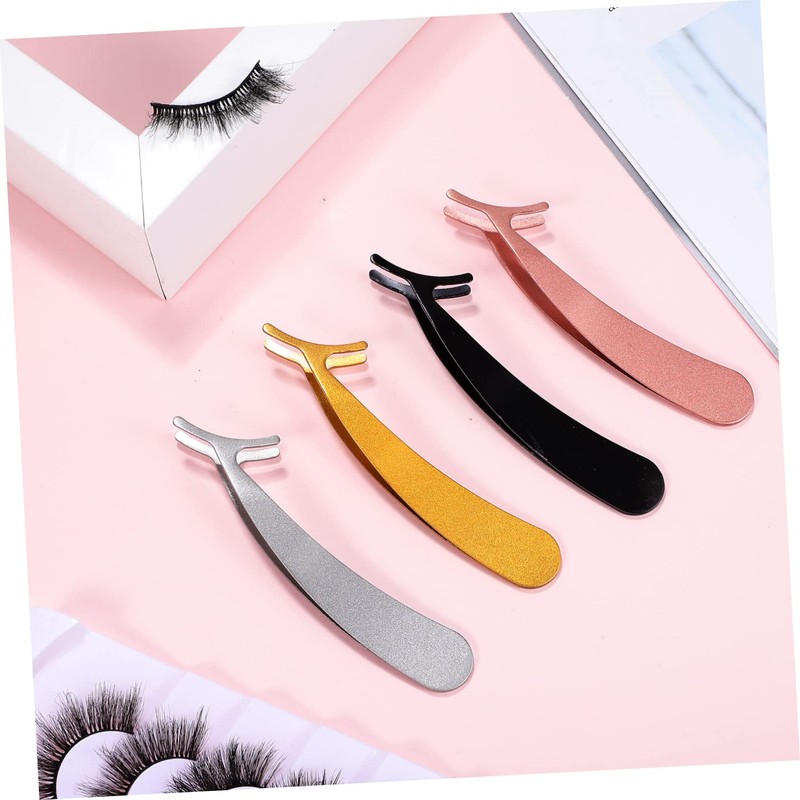 IWOWHERO 4 Pack Stainless Steel False Eyelash Tweezers Applicator for Application