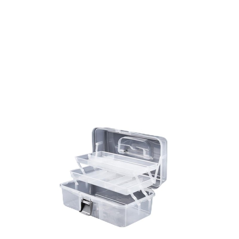 IWOWHERO Foldable Nail Tool Box Multi Functional Cosmetic Case Three Layer Transparent Storage Organizer for Nail Art Makeup and Small Parts Compact Design Small