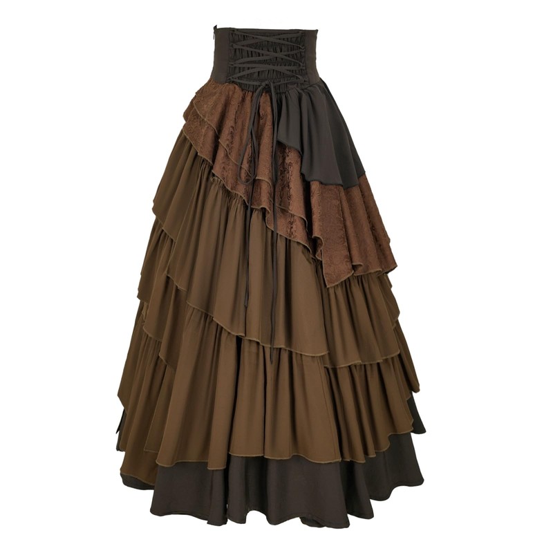 - This steampunk skirt features a layered design, elastic high waist, and ruffle hem, giving you a flattering silhouette and a vintage look.