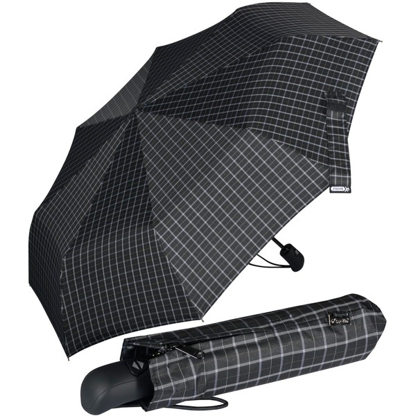 iX-brella First Class Edition – Elegant Pocket Umbrella – Automatic Open/Close – Large Stable Stormproof, Chequered Black