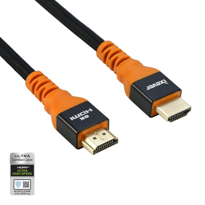 - Durability The IXEVER 8K HDMI cable v2.1 male to male cable with heavy duty gold plated connectors, aluminum alloy housing with built-in tinplate, 30AWG high purity copper conductor, triple shielded, PET composite braided yarn, ensures that the cable can transmit signals at high speed but low loss, tested plugging and unplugging up to 10,000 times Durable and sturdy.