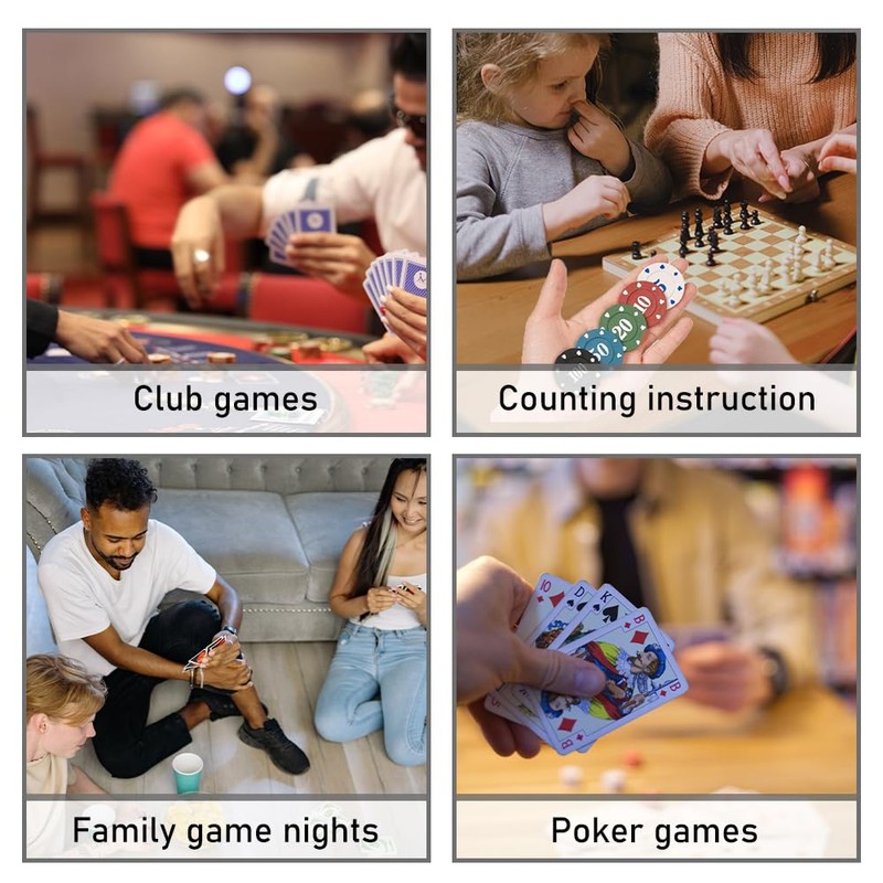 - Applications—The Plastic Poker Chips is learning Helper of math,or make your Poker games, Pool halls,Home game night or family gatherings much more funny.Double as math manipulatives for classrooms or homeschooling; Color-coded disks teach arithmetic, probability, and money skills.