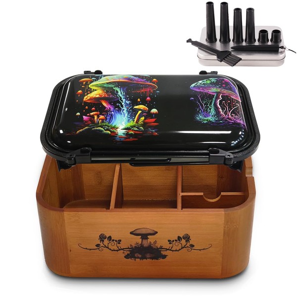 The storage box is made of bamboo wood and metal, which is sturdy and durable. The metal tray lid is designed to help you block prying eyes.