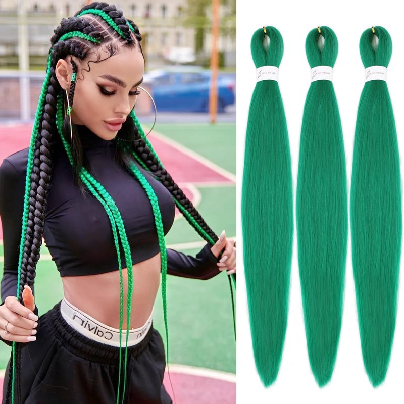 - 【PACKAGE】💓26inch green pre stretched kanekalon hair 3 bundles,about 300g intotal.Come with a crochet needle.