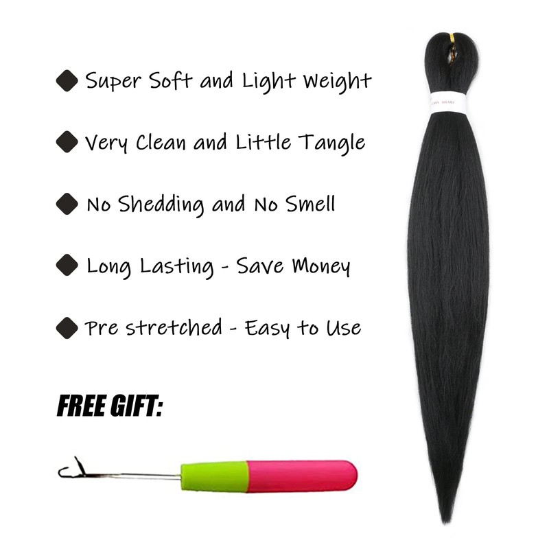 • 【PACKAGE】💓26inch pre stretched kanekalon hair 3 bundles,about 300g intotal.Come with a free gift crochet needle.
