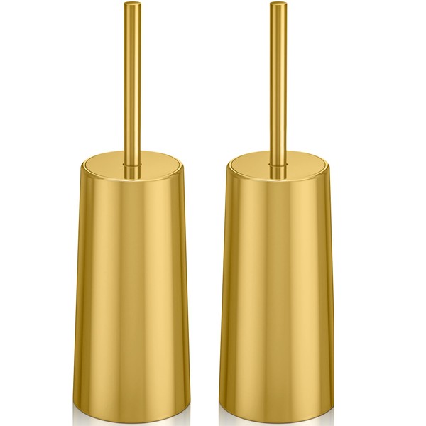 Toilet Brush and Holder, 2 Pack Toilet Brush Stainless Steel, Toilet Bowl Brush for Bathroom Toilet-Ergonomic, Elegant,Durable (Gold)