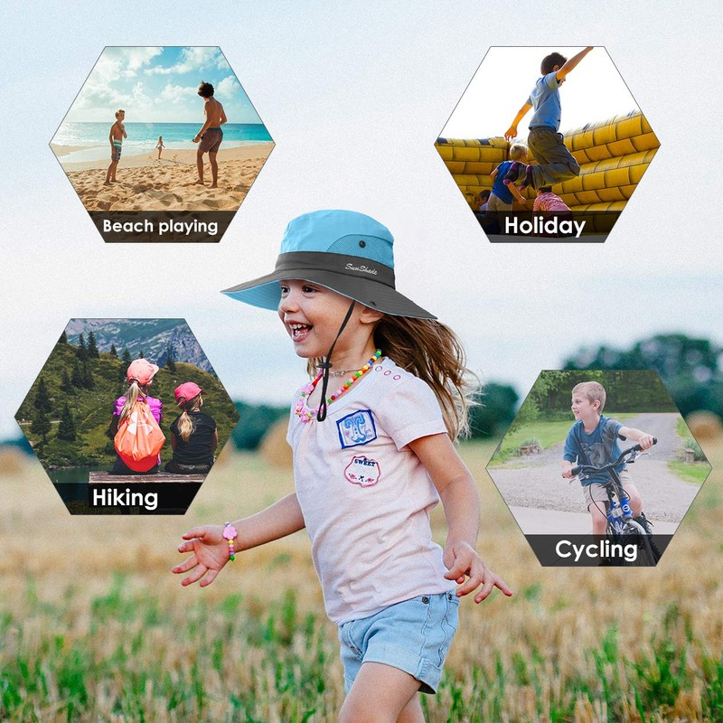 - Excellent Sun Protection: Wide brim length is 2.8 inches. It is wide enough to provide your child with excellent sun protection, protecting the child's head, eyes, face and neck from harmful sun UV rays, which means more time for outdoor activities.