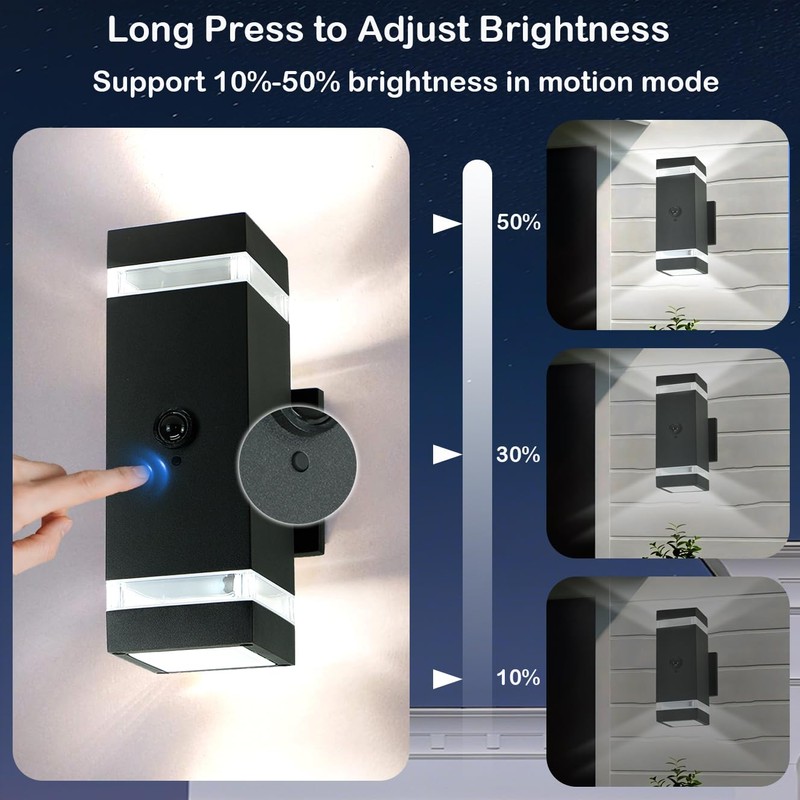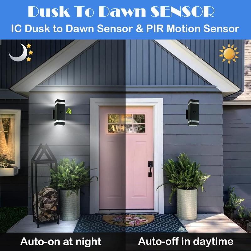 - Advanced dual Sensor for Smart Security:This outdoor wall lights equipped with PIR motion sensor that detects movement within 30ft / 120° range, these motion porch light up instantly when motion is detected, while the IC dusk-to-dawn sensor ensures automatic on at dusk and off at down, say goodbye to stumbling in the dark and wasting electricity—perfect for enhancing security while saving energy