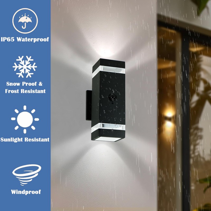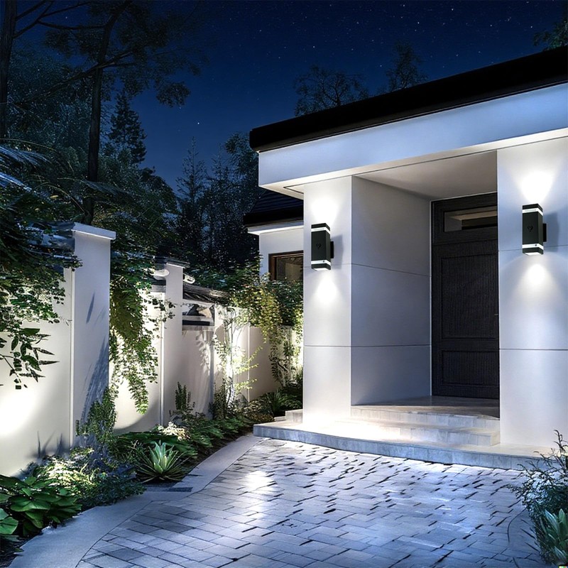 A modern, minimalist square design with up and down light projection makes it a sleek addition to your porch, patio, entryway, or garage. Each unit comes with two high-efficiency GU10 LED bulbs and is ETL certified for safe use.