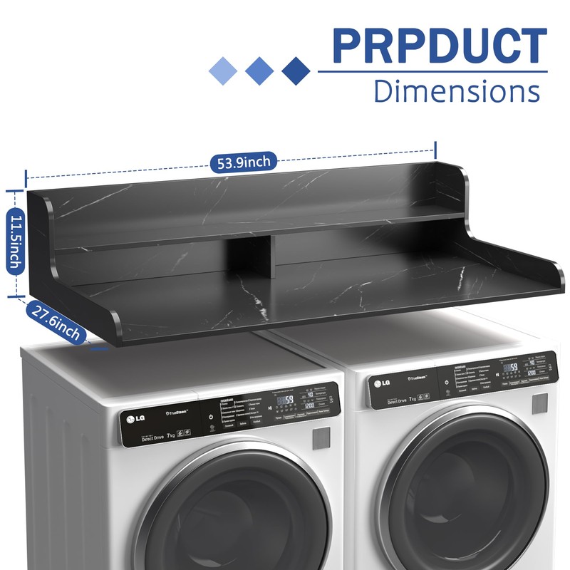 - Spacious and Functional: Measuring 54 inches in length, 27.5 inches in width, and 12 inches in height, our countertop is designed to maximize space utilization. Featuring an additional shelf for extra storage, it provides ample room for all your laundry needs. Whether you're folding clothes, sorting laundry, or organizing essentials, this countertop offers a hassle-free washing and drying experience.