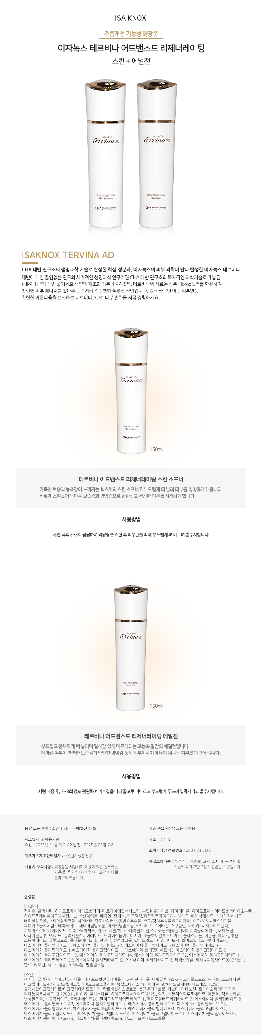 이자녹스 테르비나 리제너레이팅 2종구성(스킨+에멀전