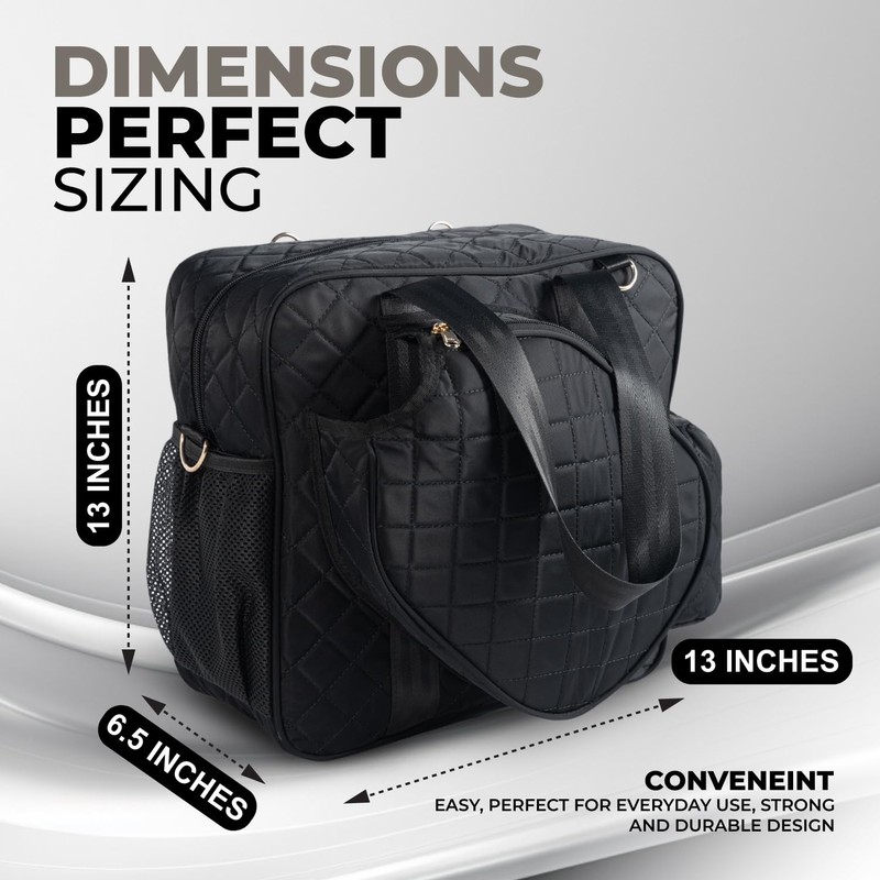 - Luxury Black Pickleball Bags For Women: Our pickleball bag with shoe compartment is made of high-quality nylon material, which is durable and water resistant. It has a large main compartment and a front paddle pocket that can hold 2 pickleball paddles, a pickleball ball bag, a cell phone zipper pocket, an extra large insulated side pocket, a mesh side pocket, and a grommeted bottom. This bag also features solid bronze hardware, a cross body strap, and shoulder straps.