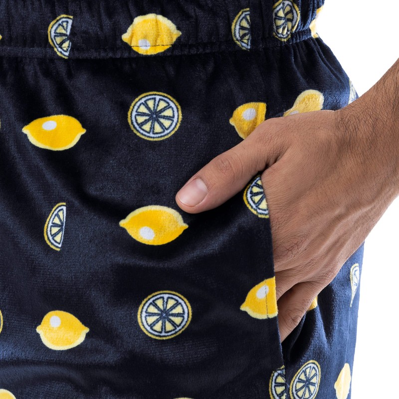 IZOD Men's Lite Touch Fleece Sleep and Lounge Short, Navy/Lemon, Small