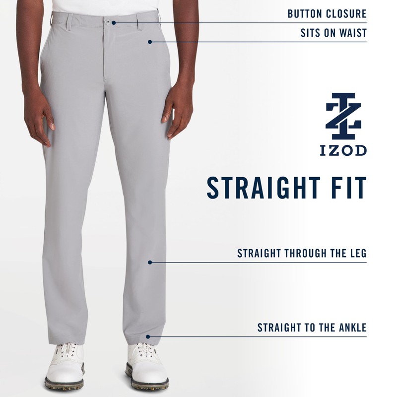 - GOLF PANTS FOR MEN: These innovative IZOD pants for men deliver style and casual comfort when it's time for your next round of golf. Our straight-fit pants are perfect for any occasion, from a day in the office to a day of golf to a night out.