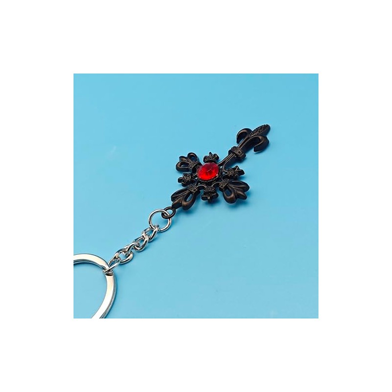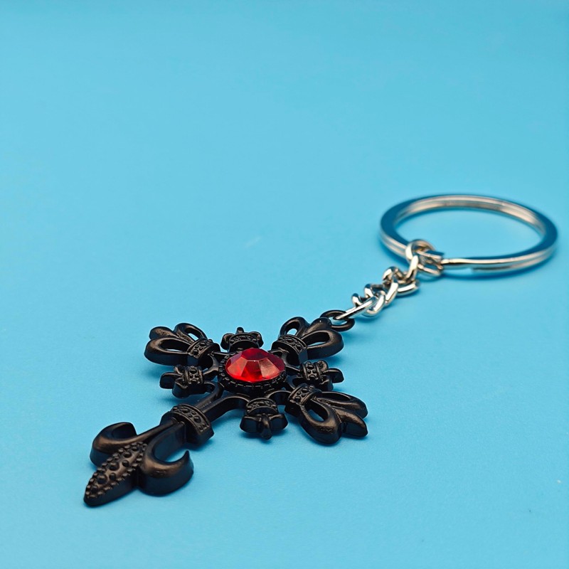 IZROLO Fashionable Stainless Steel Cross Pendant Keychain Blessing Car Keychain (Black Cross with Red Diamonds)