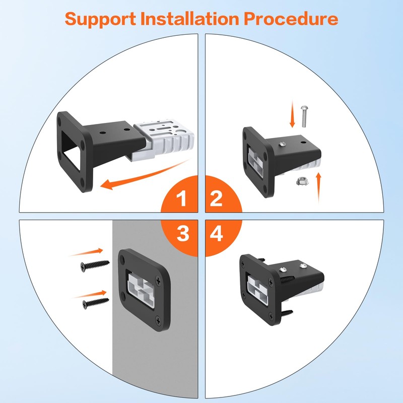 - Simple to Use and Connect: The Anderson connectors and wires should already be connected, so you don't need to do complicated wiring; The connector has A 50 A Anderson plug at one end and an O-ring terminal with an inner diameter of 8mm at the other end, and the adapter of the same color can be easily and quickly connected and disconnected without being restricted by a plug or socket, Bracket and protective cover for easy installation and protection