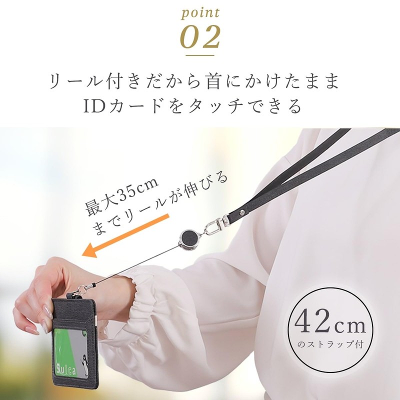 - 2 types: Vertical and horizontal types, depending on the type of card and when used. Reel strap that extends up to 35cm for smooth IC card reading even while standing