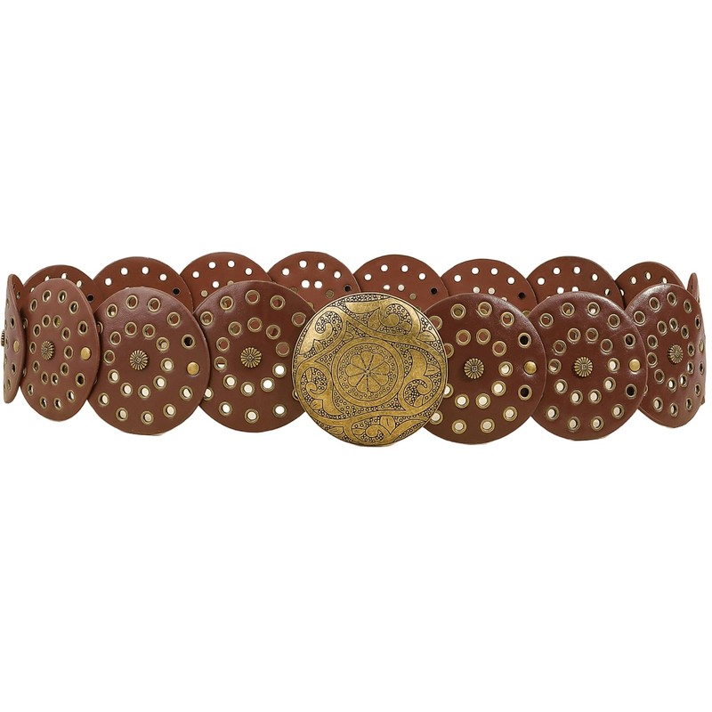 IZUS Classic-Retro Oval-Concho-Buckle Western-Belt for Women-Dresses Wide-Disc Cowgirl-Belts Boho-Country-Style