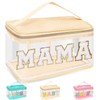 izuzta - Bolsas de maquillaje transparentes con letras de chenilla, bolsa de maquillaje con asa, MAMA-Beige