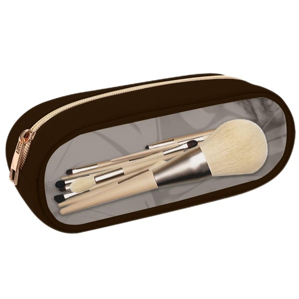 izuzta - Bolso pequeño de nailon con cierre para maquillaje, Marrón, Delgado