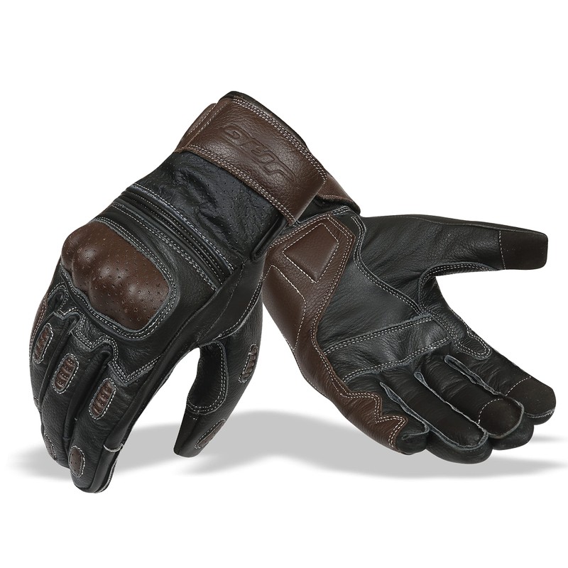 J.A.G. JAG Motorcycle Gloves, Brown Leather Perforated Motorcycle Gloves for Men with Knuckle Protection, Touchscreen Motorbike Gloves (Brown, X-Small)
