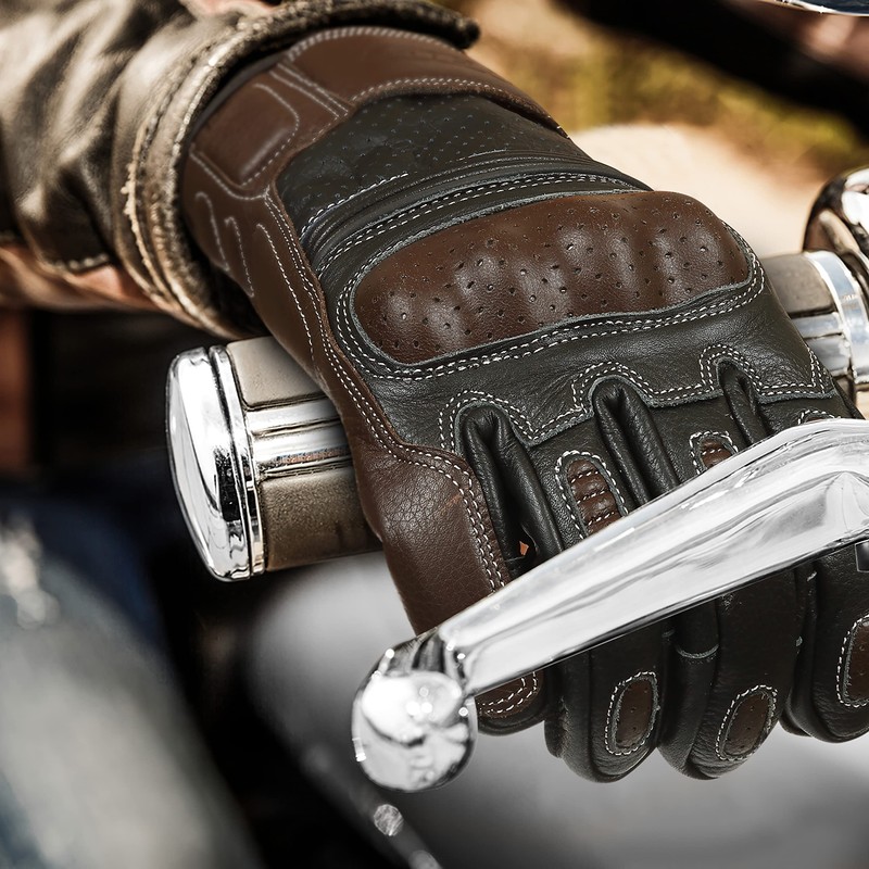 - COMFORT: Made with genuine leather (cowhide), the gloves offer a superior fit and feel, providing a tactile grip that allows for confident control and handling. The ergonomic design is tailored to fit the natural contours of the hands, providing maximum comfort and reducing hand fatigue during extended rides.