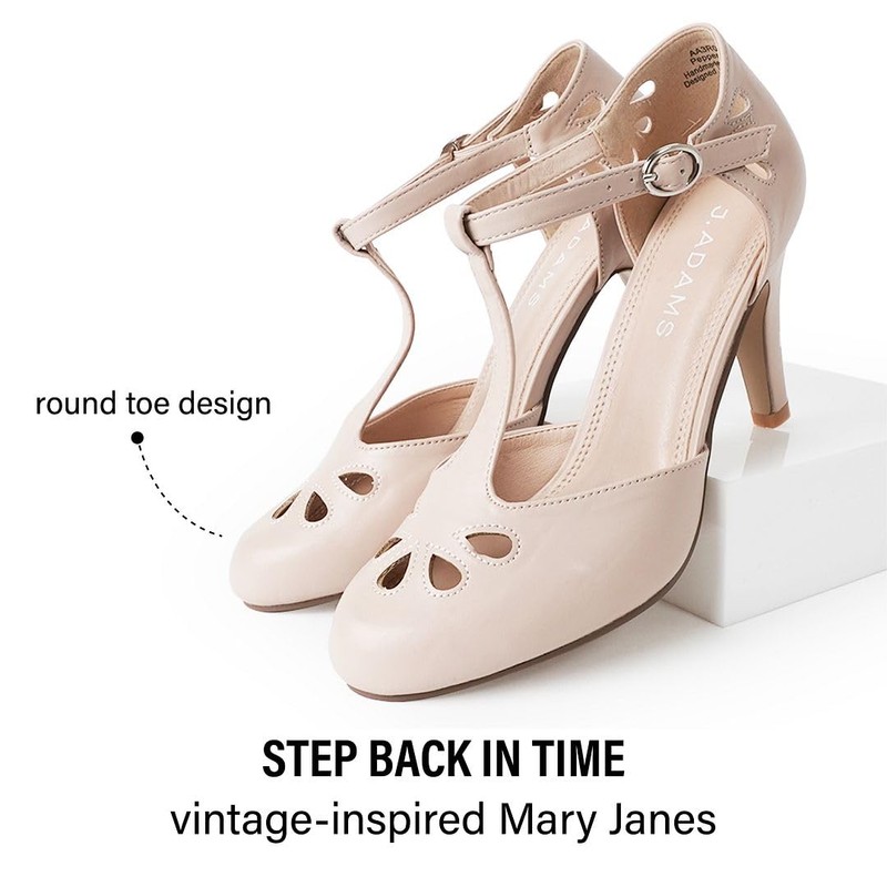 - UNIQUE DESIGN FOR OUTSTANDING APPEARANCES: These beautiful heels feature a round toe design look that is just adorable. Unique scallop details are perfectly cut out to accentuate an adorable vintage look for all your outfit needs. Featuring an adjustable ankle strap with a t-strap to keep your feet in place for a custom fit. Spice up your look and walk with style and confidence!