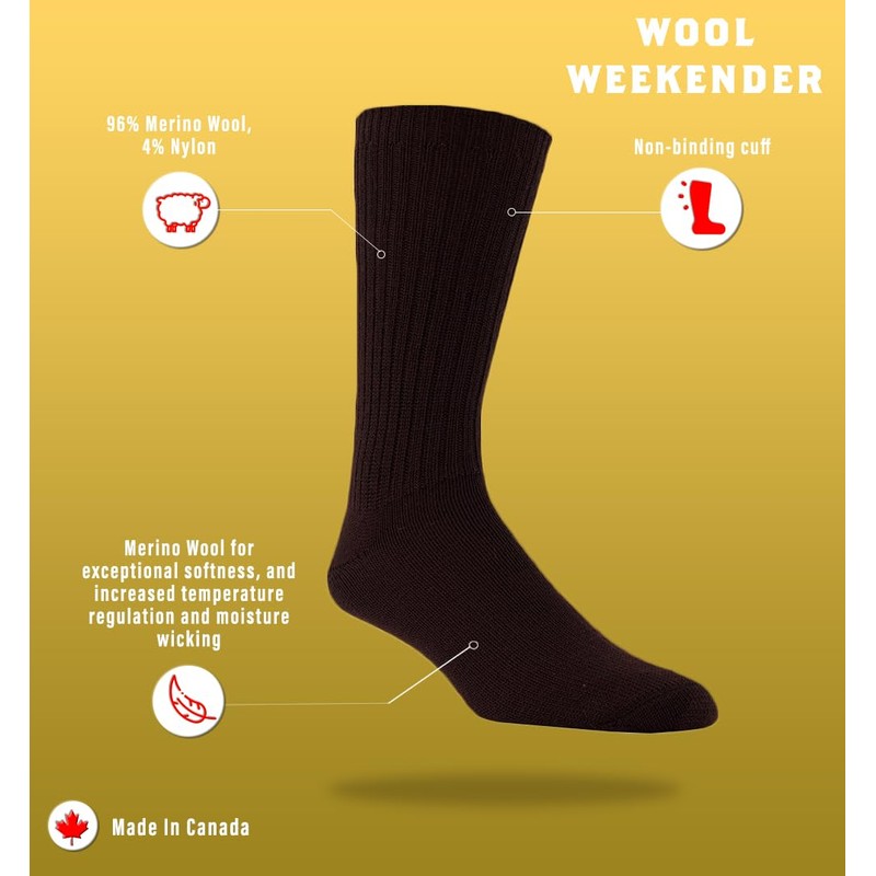 The 96% Merino Wool Weekender socks were designed for comfort and versatility! All natural merino wool is great at wicking away moisture keeping your socks smelling fresh after multiple wears. No design or logo means it can be dressed up or down depending on the situation. Best of all they can be worn all year round due to it's loose knit lightweight construction and wool's natural temperature regulating capabilities.