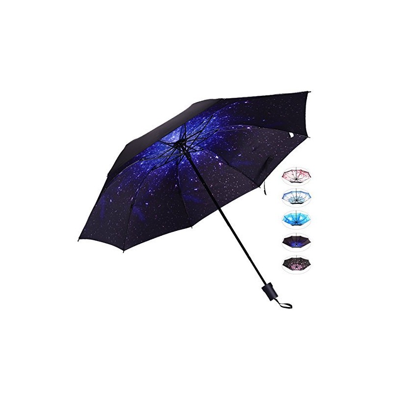 - Unique and beautiful blossom interior travel umbrella for women and girls, starry night, cherry blossom, blue sky, pink butterfly and Moroccan white and blue print, you can choose the one you like best to keep a good mood under sun and rain.