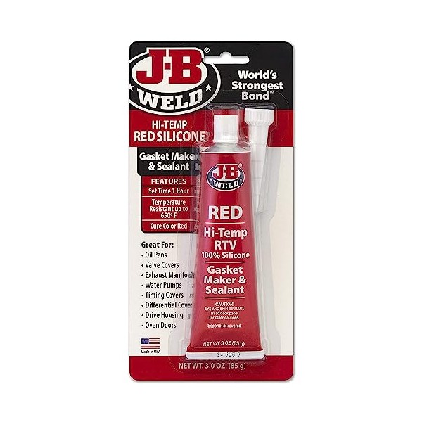J-B Weld 31314 High Temperature RTV Silicone Gasket Maker and Sealant - Red - 3 oz.