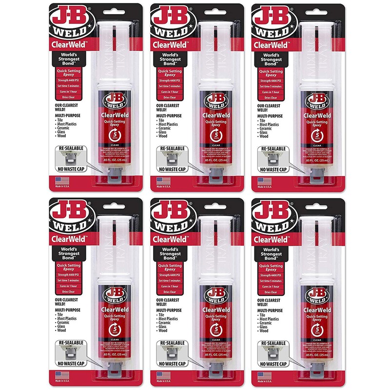 J-B Weld 50112 6 Pack 0.85 oz. ClearWeld Syringe Quick Setting Epoxy, Clear
