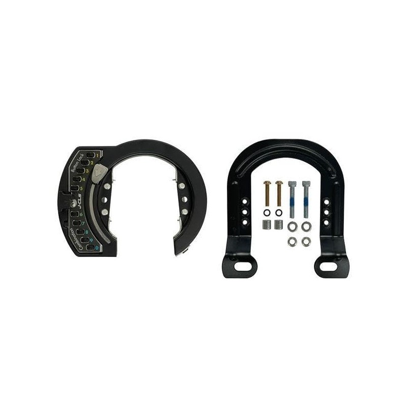 - J&C JC-083CLB BK, JC-083CLB, Variable Button Ring Lock, For V-Brakes, Switch-type Horseshoe Lock, Can be attached to the base of the V-Brake. Protect your car from theft without the hassle of carrying your keys. For V/cantibrakes. *There may be cases where it cannot be installed depending on the frame shape, tire size, and fender size. Inner Dimensions: Length 3.7 inches (93 mm) x Width 2.6 inches (6