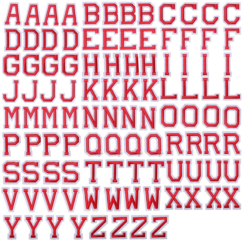 J.CARP 104Pcs Red Alphabet A to Z Patches, Iron on Sew on Letters for Clothing, Hats, Shoes, Backpacks, Handbags, Jeans, Jackets etc.
