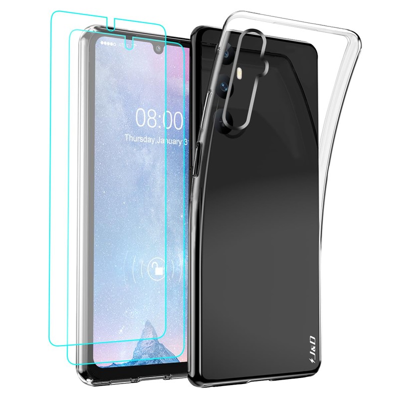 J&D Compatible with Oppo Realme C65 Case, Crystal Clear Anti-Yellow Protective Case with (Pack of 2) Screen Protector, Anti-Shock TPU Bumper Case for Realme C65, Transparent