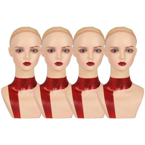 J&F CO. Exquisite Makeup Mannequin Heads for Wig Earrings Display (RH-RED 4PC)
