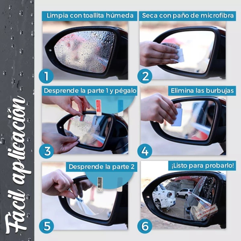 Para usarlo, simplemente limpiar la superficie con las toallitas incluidas y pegas el circulo con cuidado procurando, que no queden burbujas, y será todo, podrás tener una mejor visibilidad al manejar ya que es anti-reflejante, es a prueba de agua, anti-polvo, anti-niebla y con una alta transparencia.