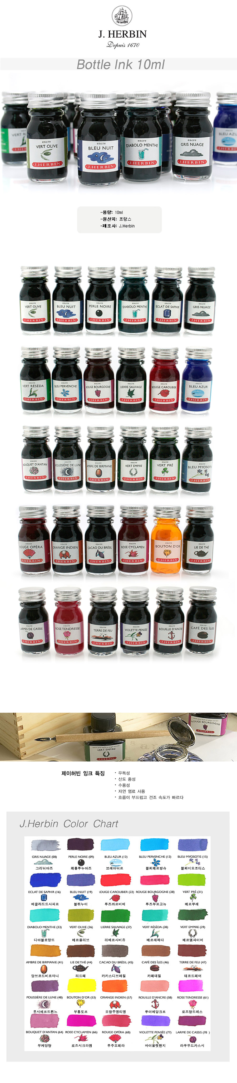 J. Herbin Mini Color Ink 10ml (Select Color) / 제이허빈미니 칼라잉크 10ml (색상 선택)