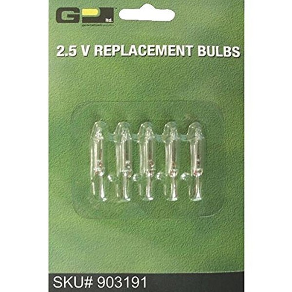 2.5-volt mini replacement light bulbs. For use with 50-light, 100-light, and 150-light sets.