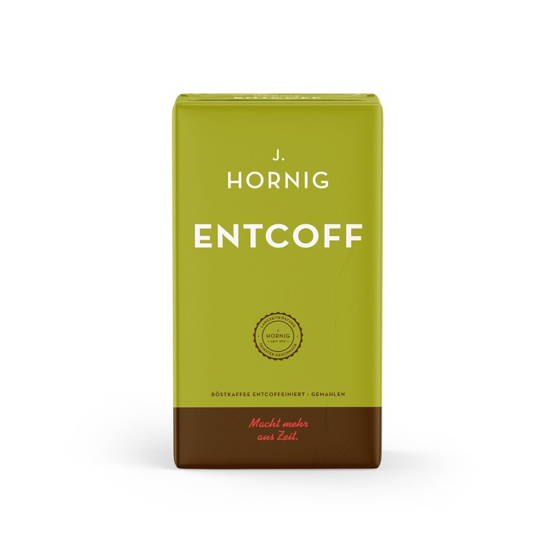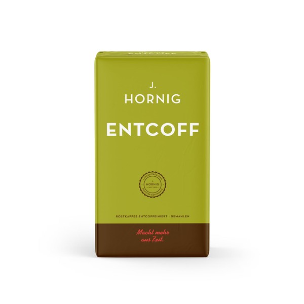 - GROUND COFFEE: J. Hornig's Entcoff knows how to pleasantly surprise. The characteristic taste of gently roasted coffee beans and the mild aroma - everything is there. The trick is that the beans are carefully decaffeinated before roasting, which guarantees a gentle enjoyment even after several cups.