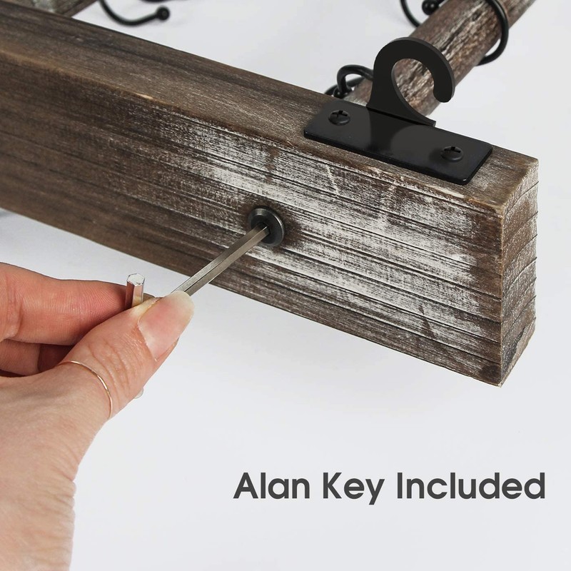 - [Stylish Design & Display] With the rustic wood frame ceiling rack it displays your kitchen appliances in a charming and stylish way, Also with the included 4 ceiling chains you can hang them according to your taste