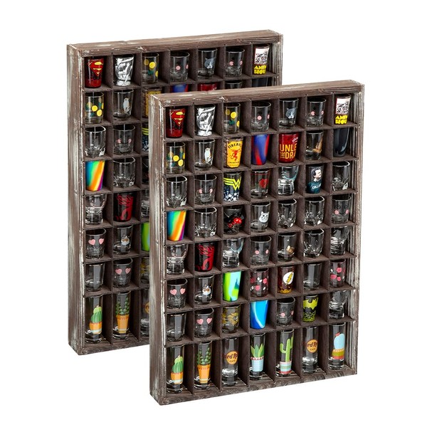 J JACKCUBE DESIGN - Shot Glasses Display Case(Set of 2) 56 Compartments Wall Mount Pint Glass Shadow Box Bar Cabinet Collection Freestanding - MK524AA