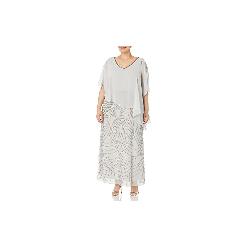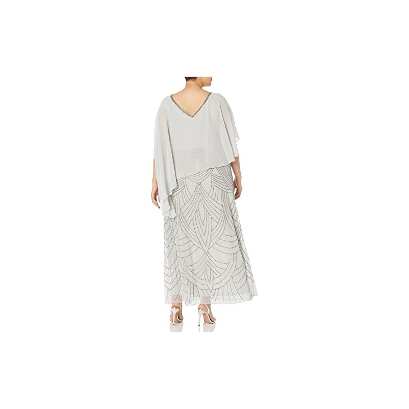 J Kara Women's Caplet V-Neck Mock 2 Piece Beaded Dress, Silver Multi, 8